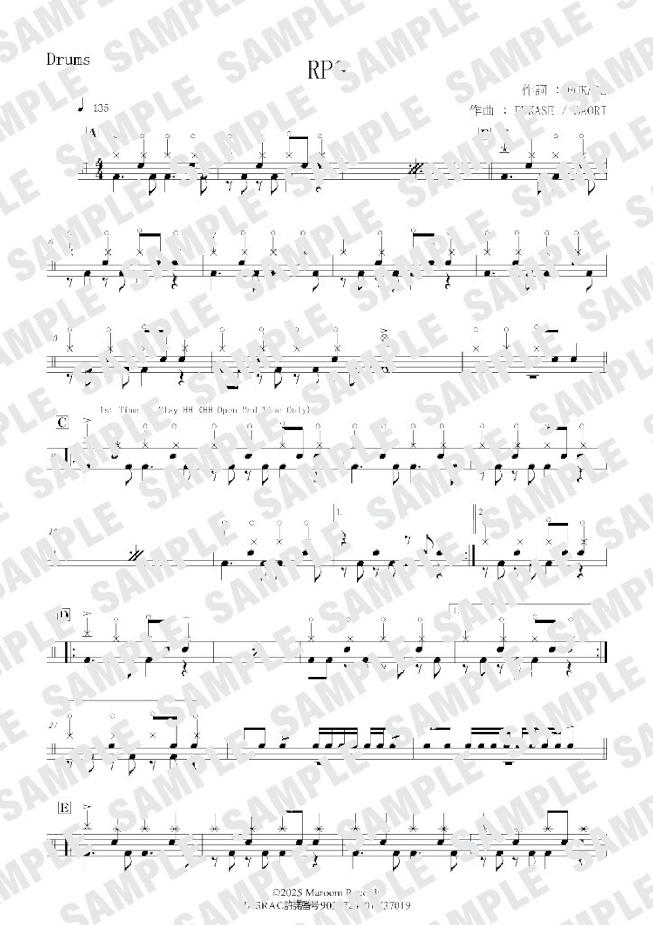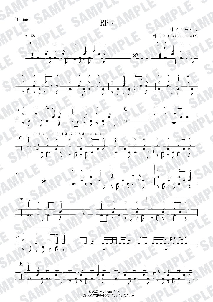 演奏技術はやや難易度が高いですが、リズムの変化やパターンを楽しみながら練習することで、演奏スキルを向上させる良い機会となること間違いなしです。Bpm135での演奏が目指せるよう、ぜひしっかりと取り組んでください。